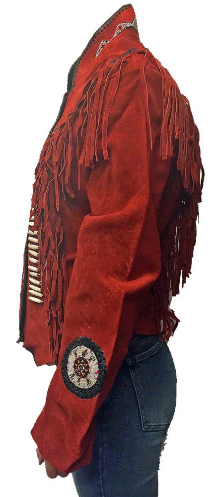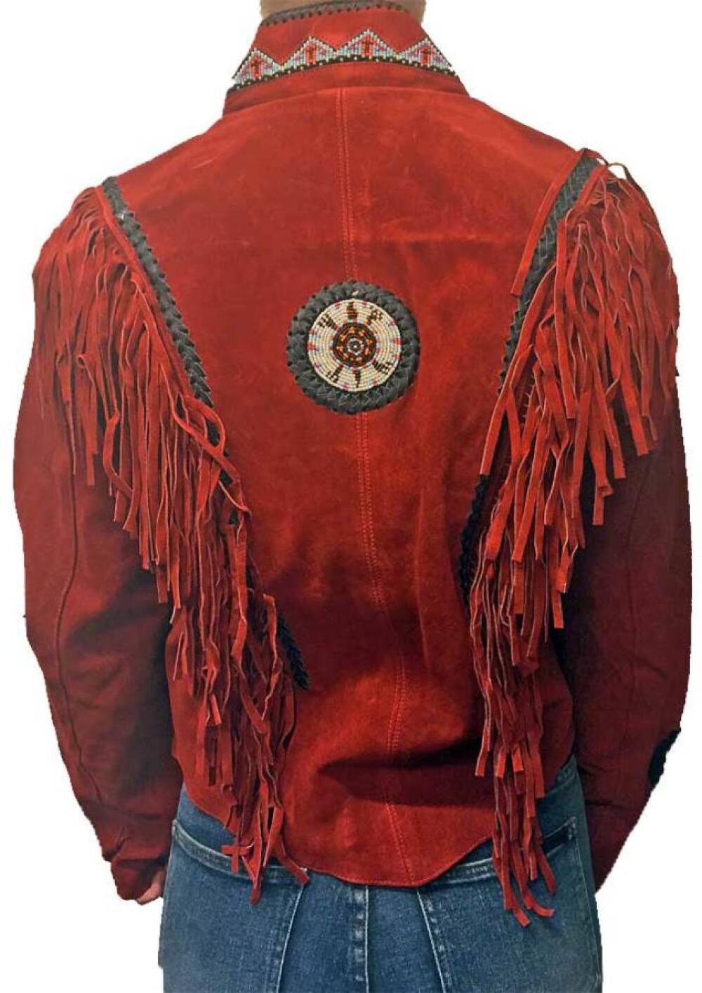 Stilfull jakke med western/indianerinspirert design. Jakken er produsert i solid skinn. Flere fine detaljer. Innvendig foret