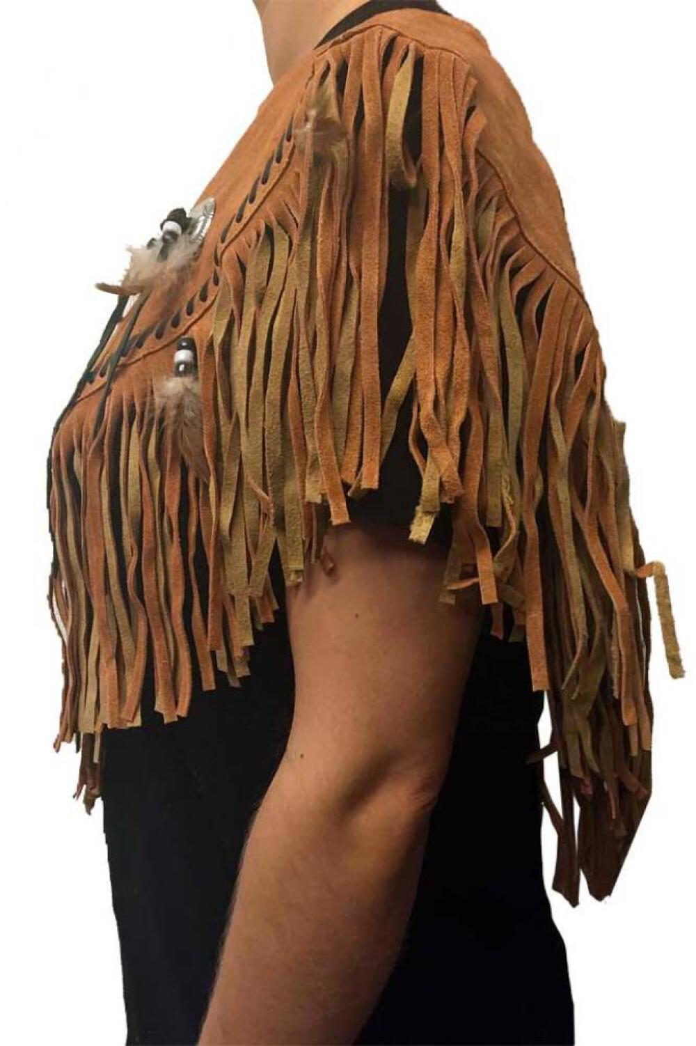 Stilfull liten poncho med indianerinspirert design. Ponchoen er produsert i solid skinn. Flere fine detaljer.