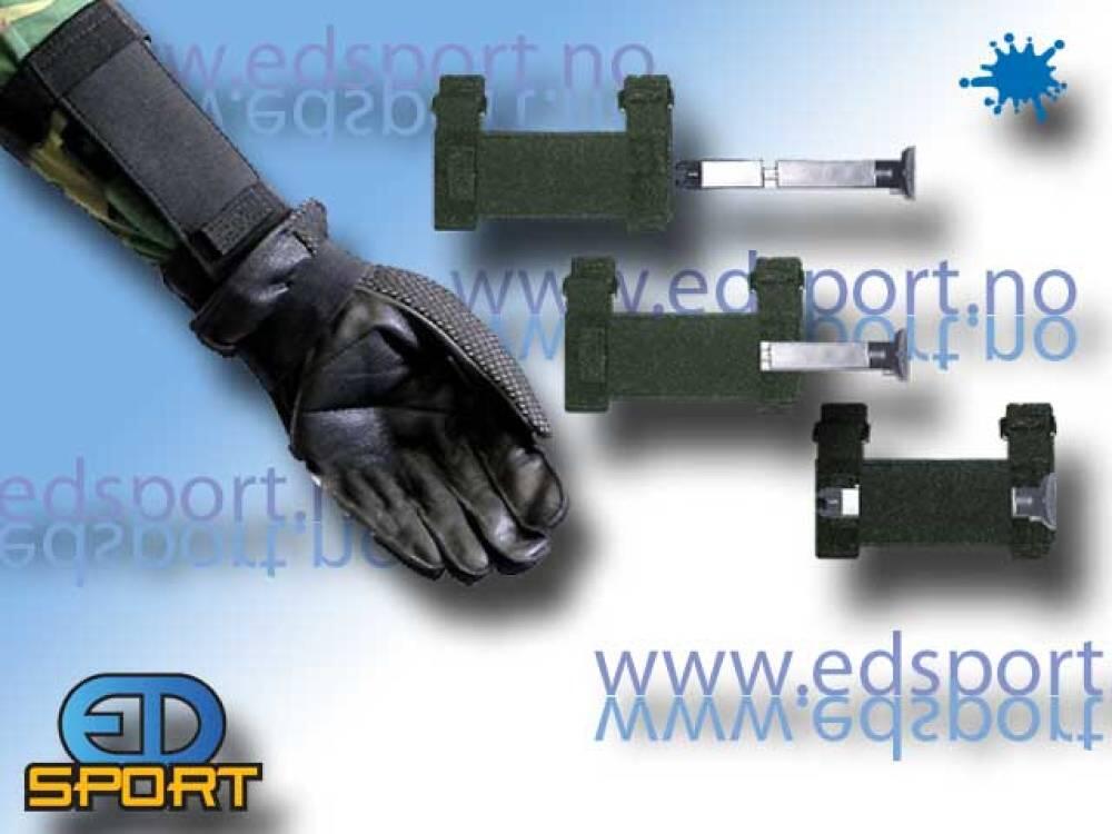 Holder for 1 stk .43 caliber paintballpistol. Denne er ment montert på underarm. Se underside for flere bilder
